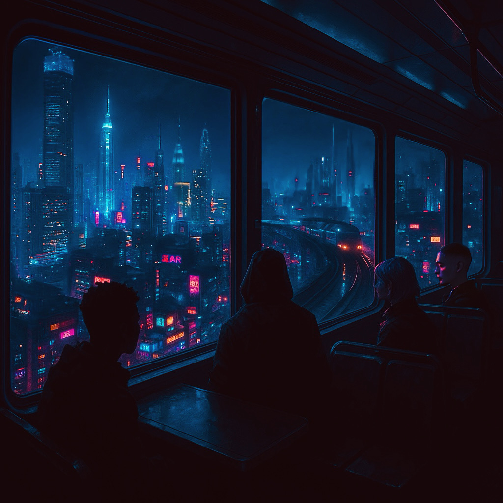 They emerged near a forgotten MagRail platform—graffiti-coated, half-lit, the glass panels fogged by time and steam. A shriek tore through the air as the train approached, sleek and dark like a blade through the storm. Mira could feel the electromagnetic hum in her teeth as it slowed just enough to let them leap aboard.