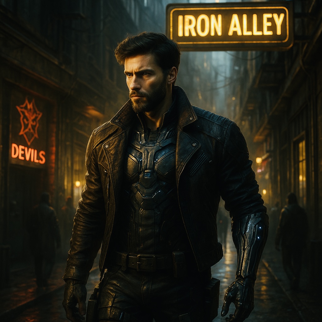 They slipped through dripping walkways and rust-stained corridors until the Devils’ hideout loomed ahead, lit with crimson neon and alive with the low thrum of bass from inside. Rika led the way, her implants glowing faintly as she scanned for movement. Kaio handled the locks, his glasses flickering with lines of data until the door creaked open.
