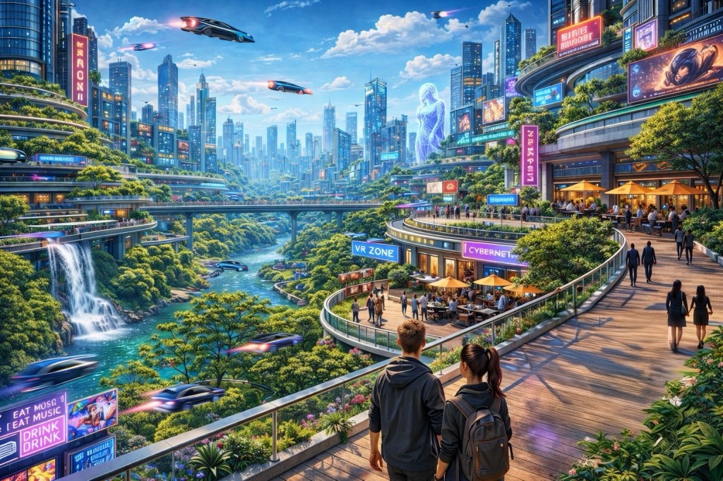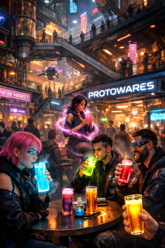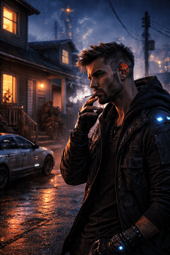 The city roared around them — hover traffic, bass from underground clubs, the endless hum of circuitry. She stood in front of him, flawless and unbreakable.